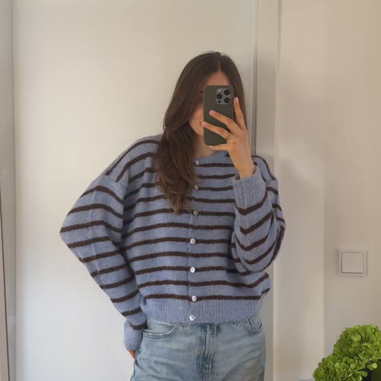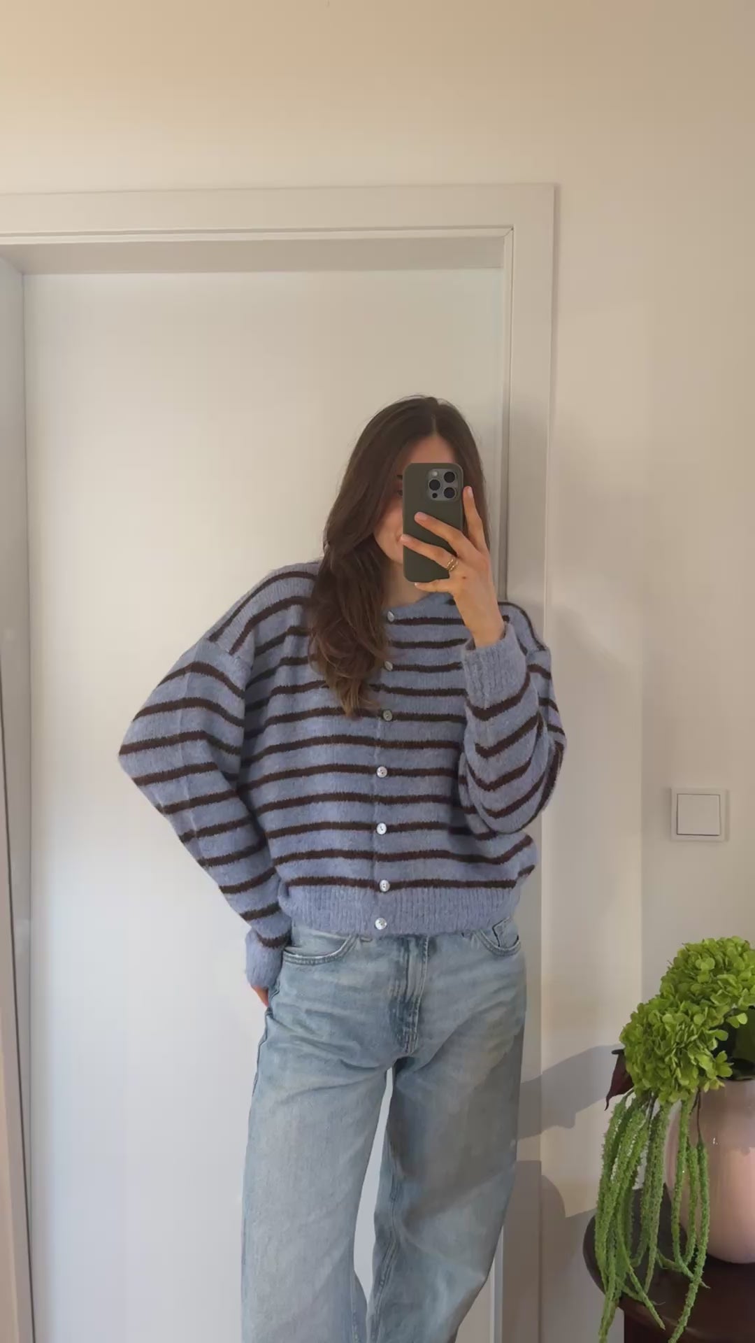 Passform: Lara ist 175 groß und hat Konfektionsgröße 36/38, Cardigan hat eine Einheitsgröße 34-42