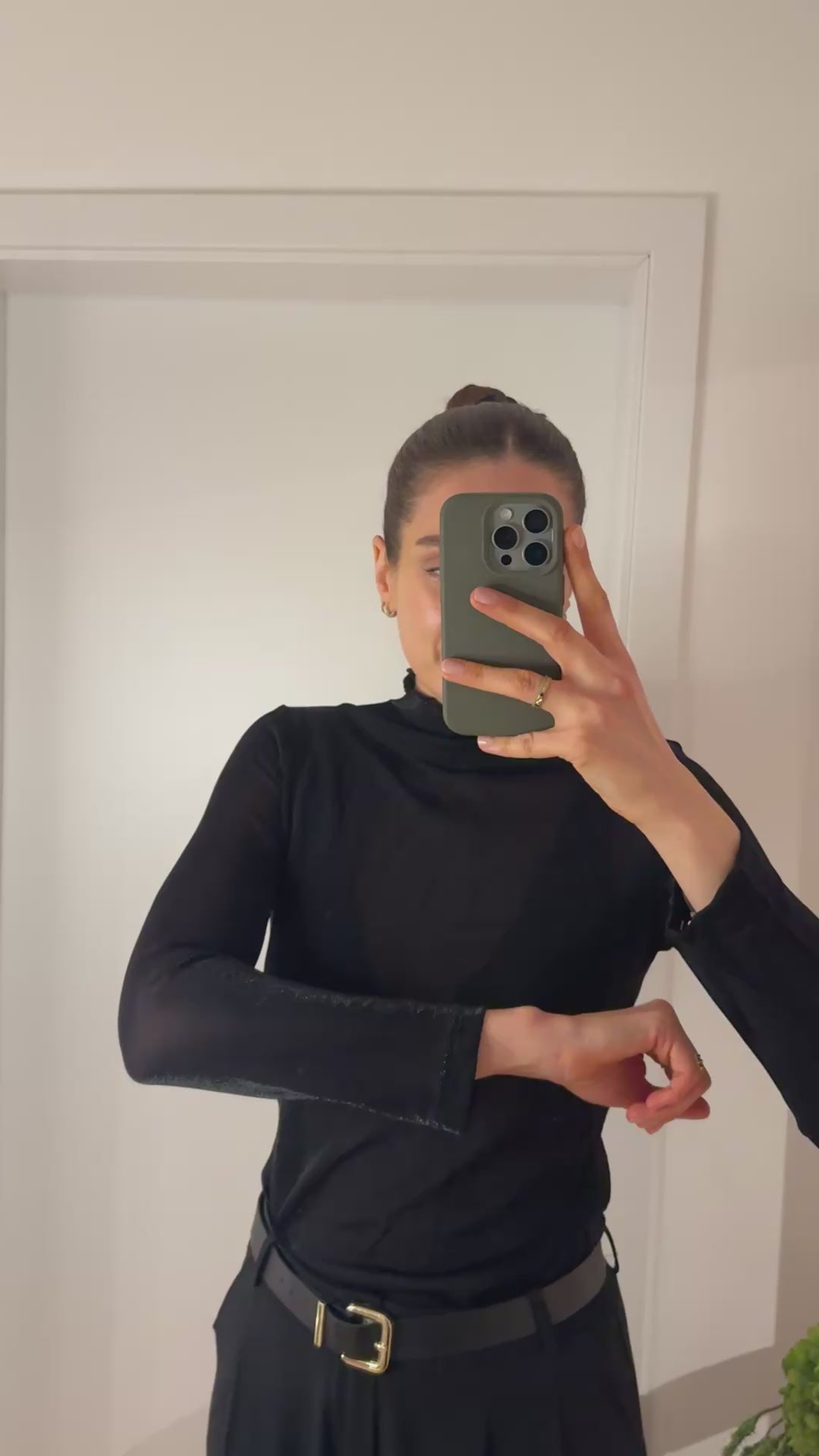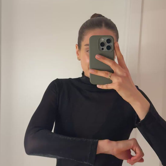 Passform: Oberteil ist transparent und schimmert Silber, Lara trägt Gr.M