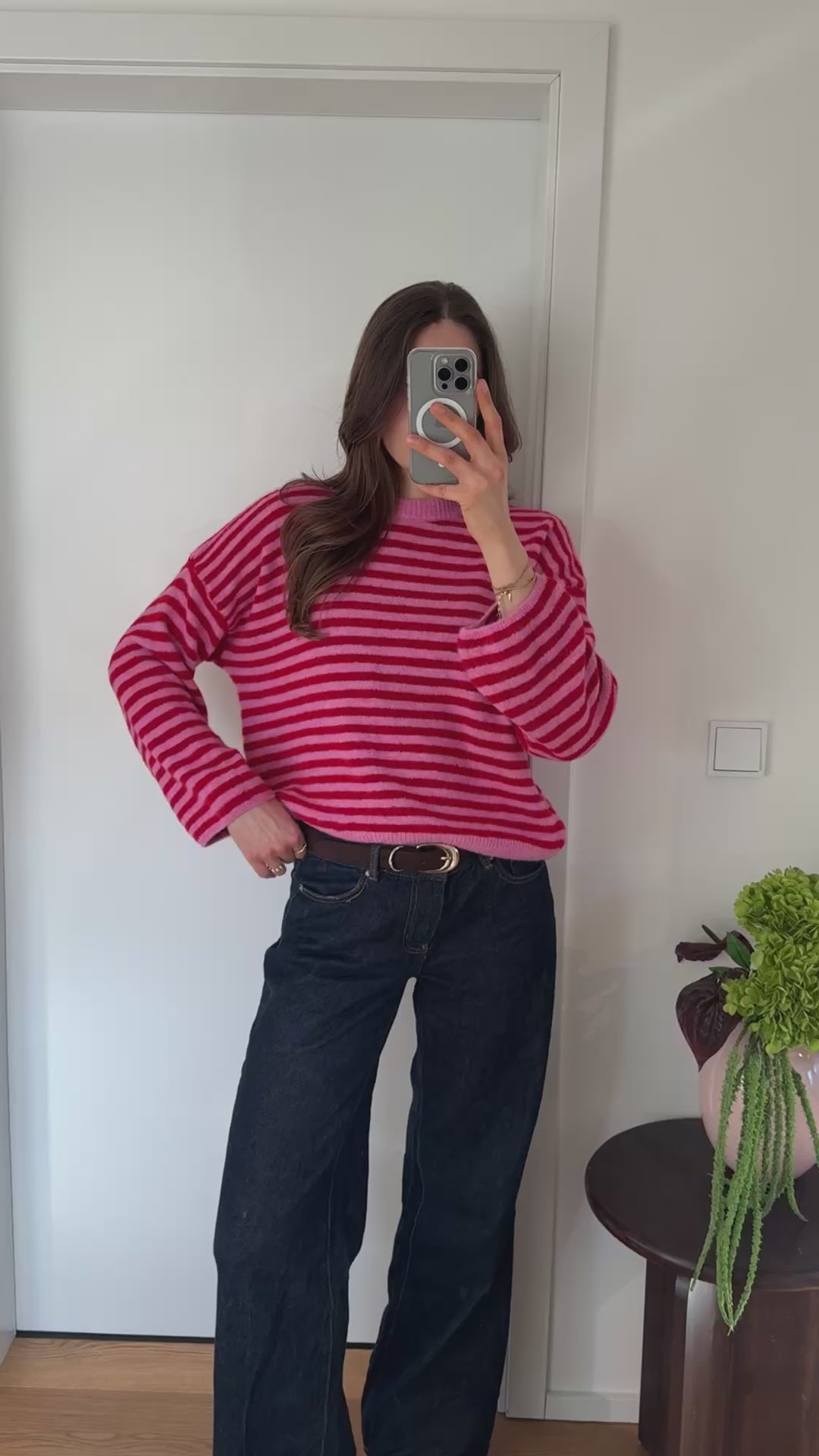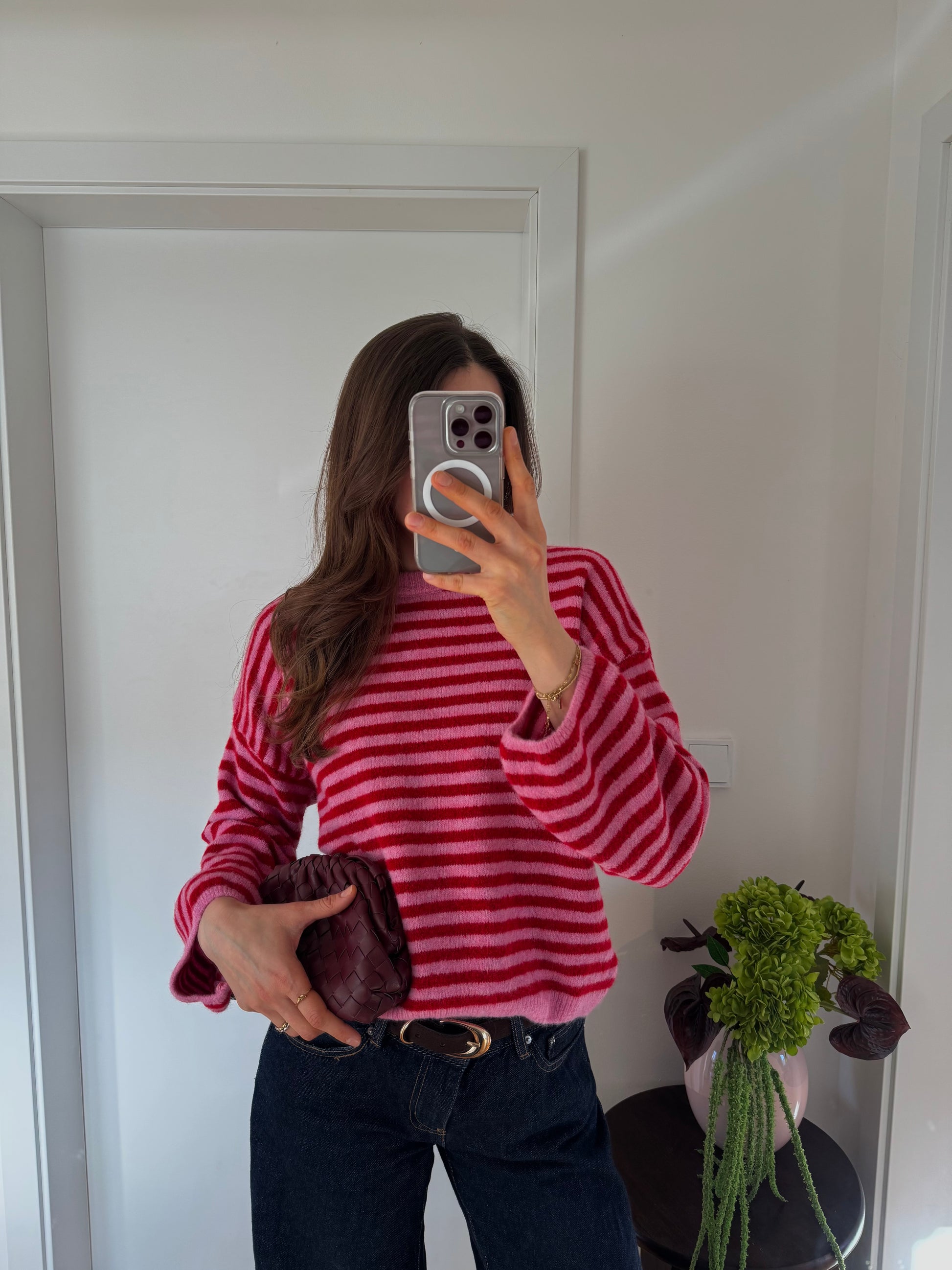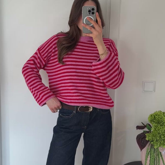 Schöner Rot/Weißer gestreifter Pullover, kratzt nicht.