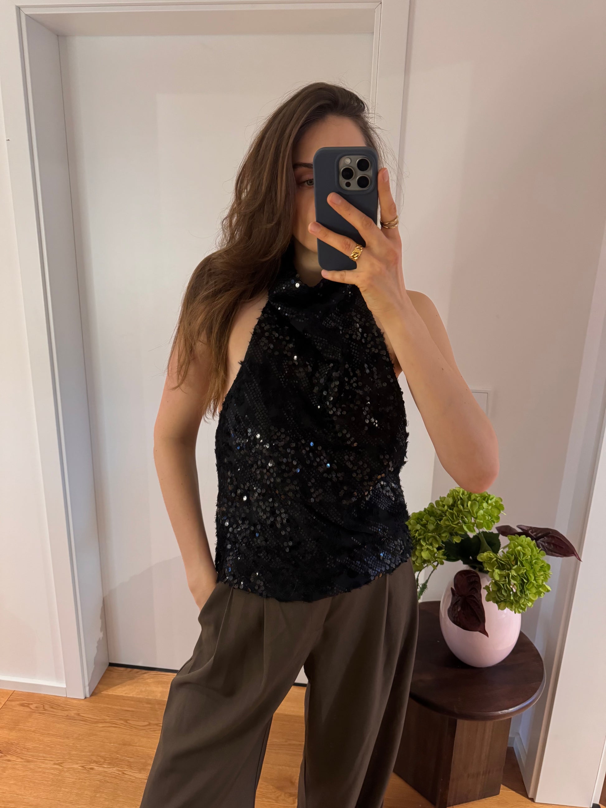 Passform: Lara ist 175 groß und trägt Gr.S, Top lässt sich am Hals schließen